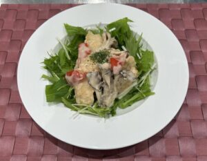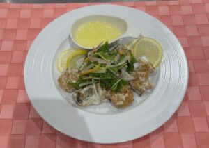 揚げてマヨネーズを和えているので重くなりがちなことろですが、爽やかなレモンソースをかけることによって味変大成功!
