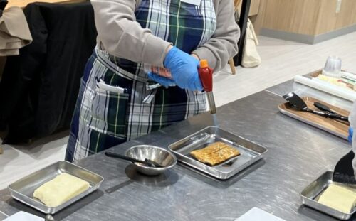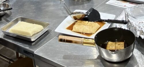 その後市販の角煮のたれを煮詰めてかけるのと、たれで煮込むの2種類調理しました。お味の差や煮崩れ具合や火加減などを実際に体験させていただきました。