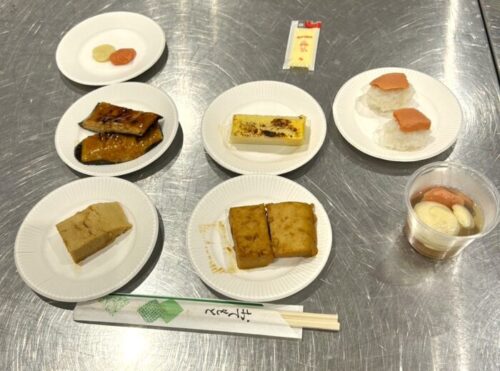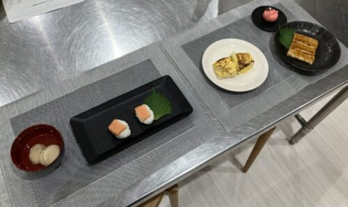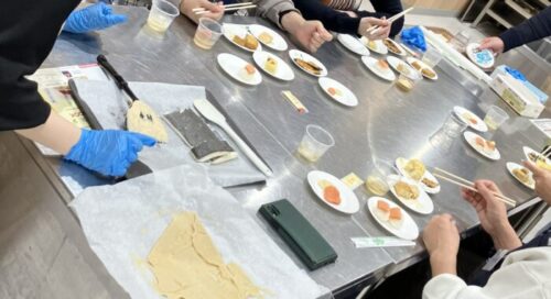 そして本日の調理にはありませんでしたが、高齢者施設で大人気の寿司のソフト食も一緒にいざ試食。デザートに練り切りとソフトクレープまでついた豪華な試食会でした。