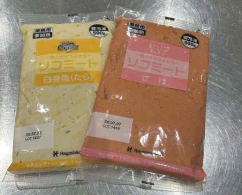 やわらくマルシェシリーズは、ソフミートと異なり魚やお肉の形ができている調理素材です。成形の手間がないので初心者にもおすすめです。