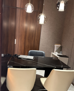クリニックへ繋がるエレベーターを降りた先には受付があり、その奥にはラグジュアリーな内装が広がります。