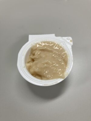 味付き水溶剤と経口ゼリーの実物を拝見。想像より濃度がある水溶剤に経口ゼリーの見た目はお世辞にも食欲が湧くとは言えないもので…味付きなのが理解が出来ます。※ゼリーには後からフレーバーをかけることもできるそうです。