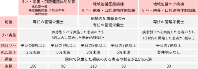 病棟専任の管理栄養士の必要性、口腔管理の重要性がより評価されていることを反映した内容となっていますね。