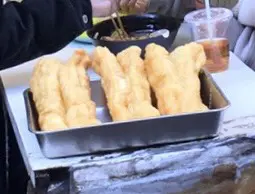 『台湾風おにぎり』も人気があります。もち米を使っていて、具材には卵はもちろん肉のデンブや、『揚げパン』と呼ばれる『油条(ユウティアオ)』も入っています。『油条(ユウティアオ)』は『揚げパン』と呼ばれますが、小麦粉をこねて細長くし揚げたもので、サクサクしていて、素朴なあじわいです。