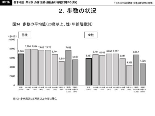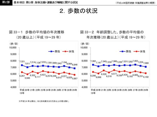また運動状況の指標として調査されている歩数に関しては、