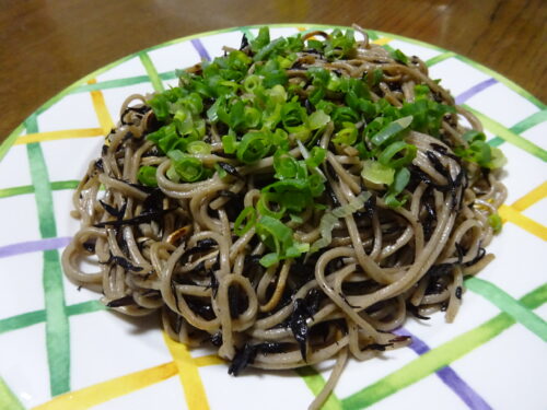 「たんぱく質」が多いそばと「カルシウム」たっぷりの芽ひじきとの組み合わせは、成長期のお子さんにも、高齢者の方々にもうれしいメニューです。