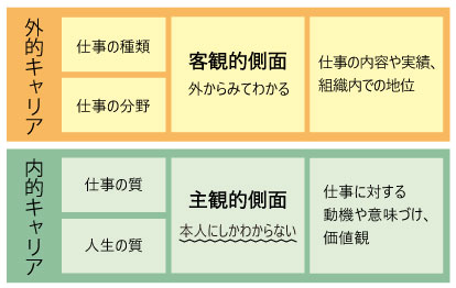 一方、働くことの意味や価値や意義などが「内的キャリア」です。