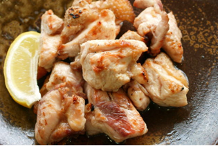 鶏の胸肉を一口大の大きさに切り、10%の塩糀につけておき常温なら30分、時間をおくなら冷蔵庫で6時間以上おきます。それをフライパンの弱火で皮を最初は下にして焼くだけです。テフロン加工のフライパンなら油なしでも十分です。
