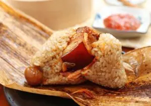 北部のちまきはあらかじめ炒めたもち米を竹の葉で包んで、蒸します。具材は栗や銀杏、角煮、うずらの卵など具材がたっぷりです。